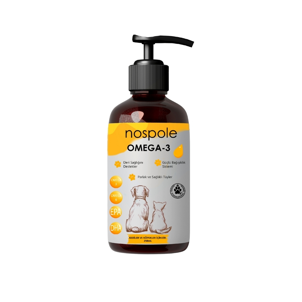 nospole Omega-3, soğuk deniz balıklarından elde edilen saf ve zengin içeriğiyle kedi ve köpeklerinizi baştan aşağı yeniler.